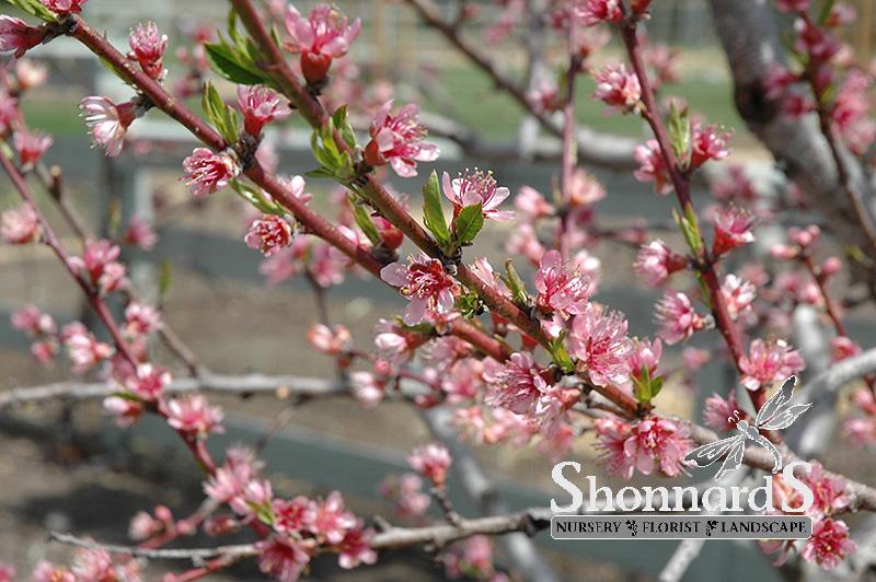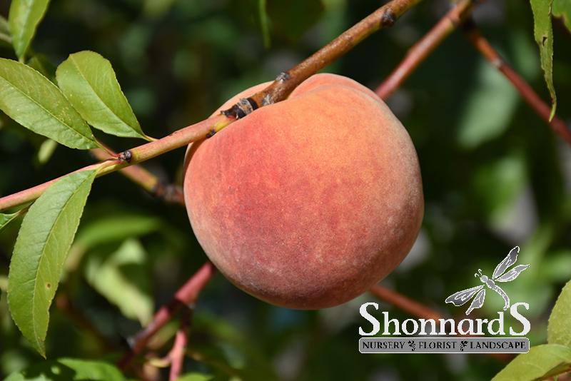 A popular yet fickle fruit tree, with firm, juicy reddish peaches in mid summer; quite ornamental, with showy pink flowers in spring and a low, spreading habit; susceptible to late spring freezes and disease, needs full sun and well-drained soil