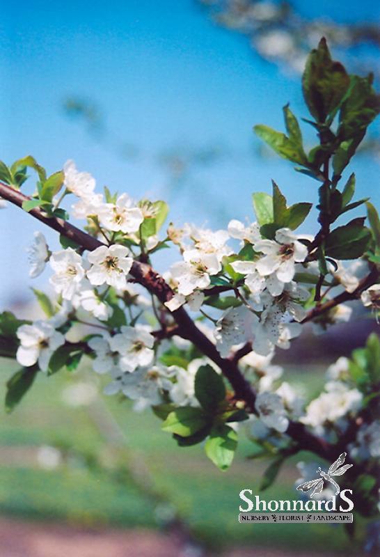 A much sought-after dwarf selection with showy fragrant white flowers in spring followed by super-sweet and juicy yellow fruit in mid-summer; quite ornamental; needs full sun, well-drained soil and a pollinator.