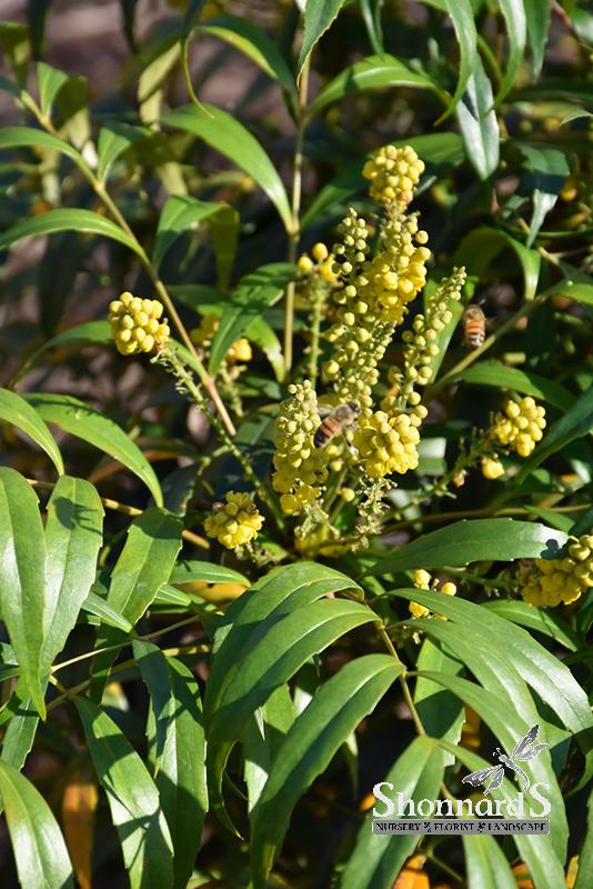 Soft Caress Mahonia features bold racemes of fragrant yellow flowers rising above the foliage in late fall. It has attractive bluish-green evergreen foliage. The narrow pinnately compound leaves are highly ornamental and turn an outstanding purple in the fall, which persists throughout the winter. It produces powder blue berries from late summer to early fall.