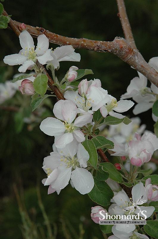 Delicious, sweet-tart and crisp flavored yellow colored apples that are streaked with red; apples are good for eating fresh and storage; showy red flower buds open to fragrant white flowers; prune regularly to train into a strong tree.