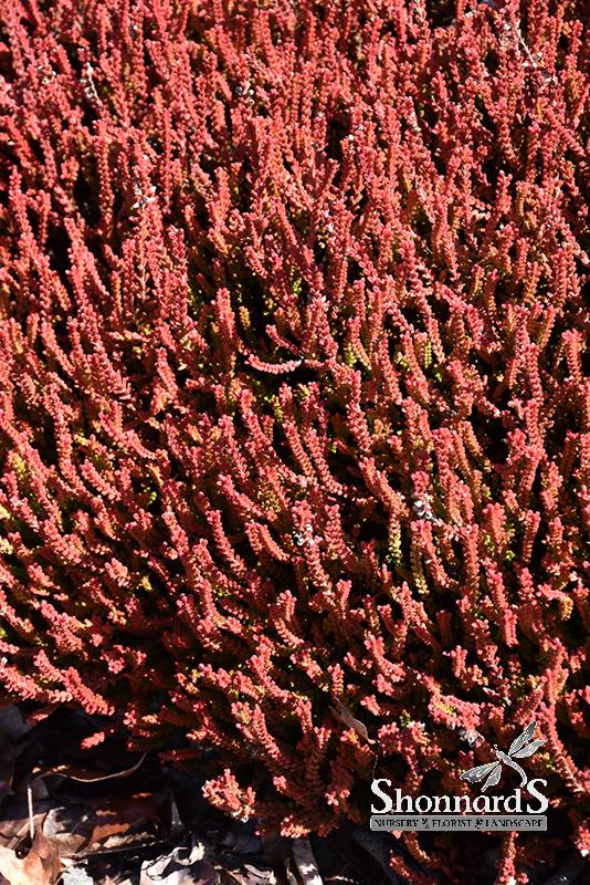 Firefly Heather features tiny spikes of violet bell-shaped flowers at the ends of the branches from mid summer to mid fall. It has attractive scarlet evergreen foliage. The needles are highly ornamental and turn orange in the fall, which persists throughout the winter.