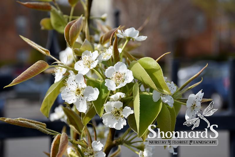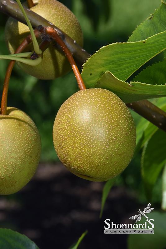 This upright, spreading tree produces very large, golden russeted, mid to late season fruit; flowers profusely in early spring, and presents a striking orange-red display in fall; has very good fireblight resistance.