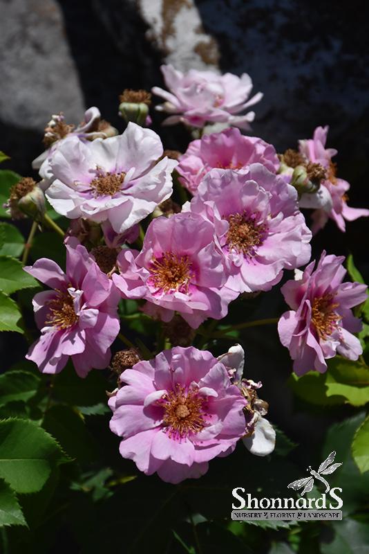 A beautiful, vigorous, and highly disease resistant rose presenting clusters of pink to lavender blooms with large, deep magenta-purple eyes; a good selection for containers or as a garden accent; has a moderate citrus and spice fragrance; bushy and dense.
