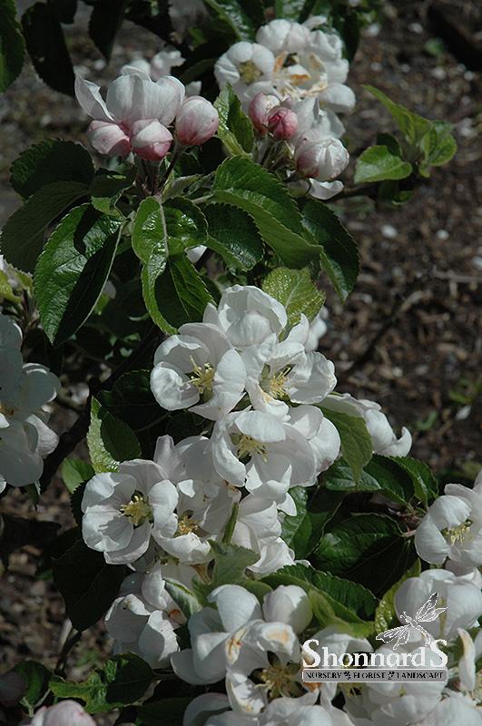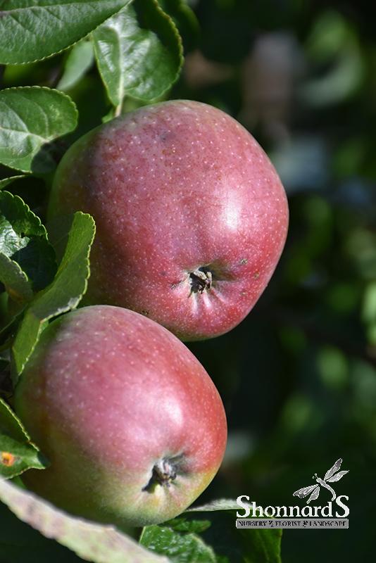 A very hardy and popular red-streaked apple with a greenish blush, good tart flavor, keeps well; eating apples are high maintenance and need a second pollinator; the perfect combination of accent and fruit tree, needs well-drained soil and full sun.