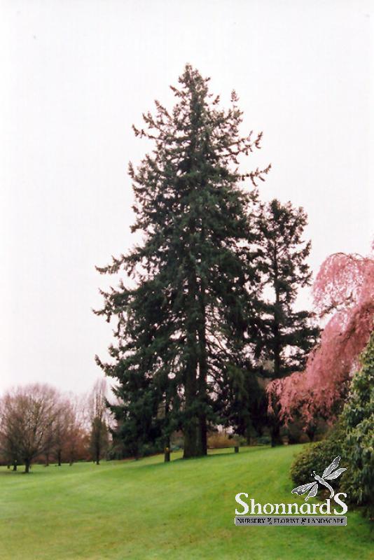 A massive conifer of the Pacific coast with an imposing spire-like form and rich dark green needles; requires ample moisture and high humidity, best for larger landscapes and parks.