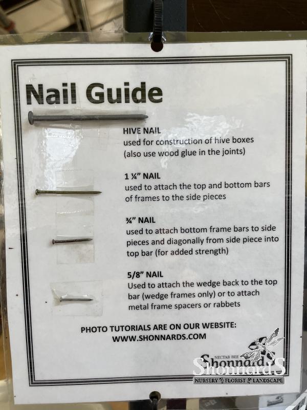 Used in the construction of hive bodies. Holes should be predrilled and nails should be hammered after the pieces have been glued together for extra strength! A deep hive body can easily weigh over 100 pounds so it is important to have strong bonds holding your hive bodies together!