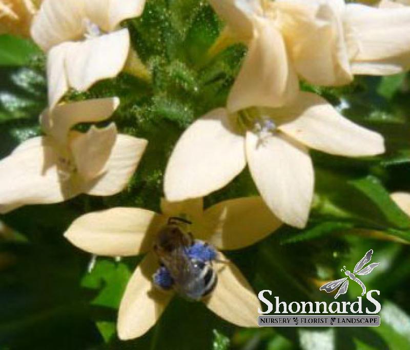 White flowers late spring to summer are very attractive to bees – look for the characteristic bright blue pollen! Re-seeding annual.
