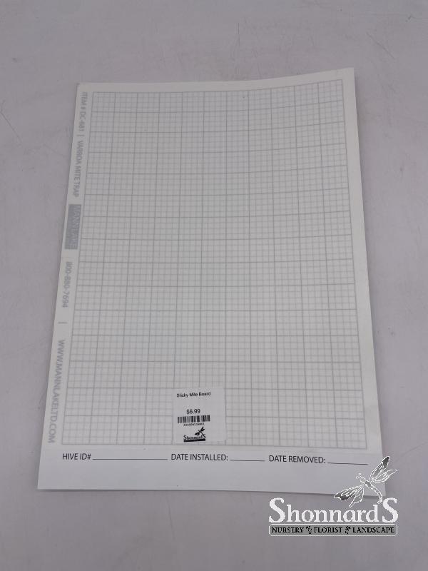 The grid pattern makes counting mites easy and the sticky coating keeps mites and debris from falling away before a count can be conducted.
