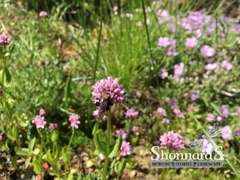 Profuse pink flowers in mid to late spring. Forage for bees of all sorts, and for many butterflies, including Fenders Blue and Taylor Checkerspot.