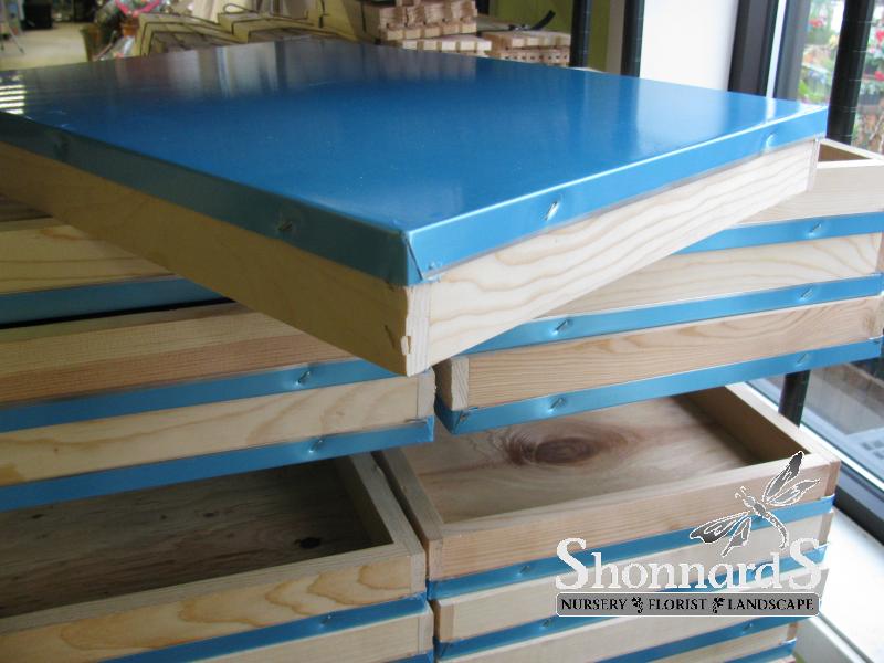The metal top has a sticky protective sheet that can be removed to make a reflective top that will keep bees warm in winter and cool in summer.