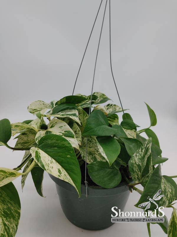 The Pothos, particularly the Marble Queen variety, is a stunning choice known for its striking variegated leaves, this plant features a beautiful blend of deep green and creamy white, adding a touch of elegance to any indoor space.