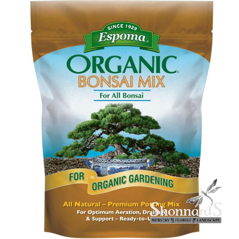 Espoma Organic Bonsai Mix is an all-natural organic blend of the finest natural ingredients including calcined clay and expanded shale. Designed for optimum support, aeration, drainage, and improved moisture retention. This mix was specially formulated for use with all Bonsai to help roots grow and the plants to thrive. When repotting Bonsai, Spring is the best time to repot. Add a layer of this mix to the bottom of the container, and place the trimmed Bonsai in the container to inspect for height and growth orientation. If necessary, add more mix to raise plant height in the container. With orientation set add the mix around the roots to fully fill the container. Press mix down with fingers and planting stick to eliminate air pockets. Ready-to-Use.