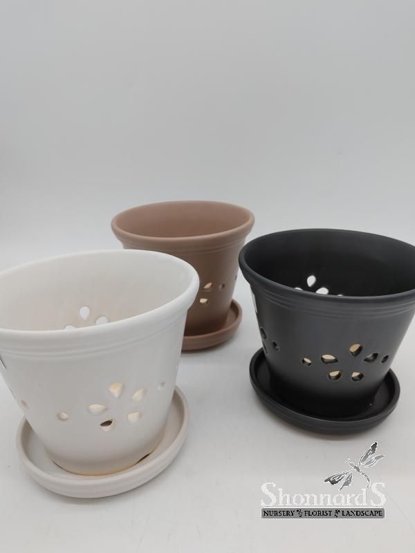 Daisy Orchid Pot With Attached Saucer Ast. Colors 5.5" x 5.25"