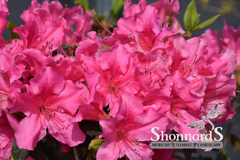 Clusters of blooms that are stunning hot pink cover this azalea in mid-spring and again for a lighter encore in fall; an upright shrub that is great for planting in groups; needs highly acidic and organic soil that is well drained