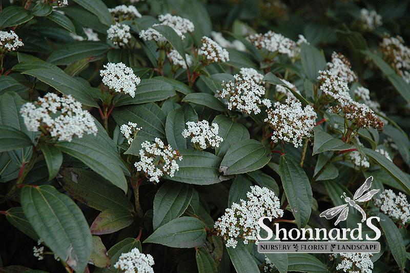 An overwhelmingly popular dwarf shrub with many attributes; showy clusters of creamy white flowers in spring, pinkish-red berries which fade to dark blue in fall; a ubiquitous foundation planting go-to shrub that requires little maintenance, enjoys shade