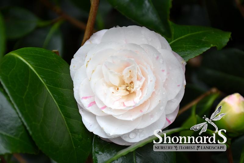 Lustrous evergreen foliage cover this upright, vigorous shrub; masses of lovely white blooms with pink candy-stripes bloom in late winter; provide rich, acidic, moist, well-drained soil.