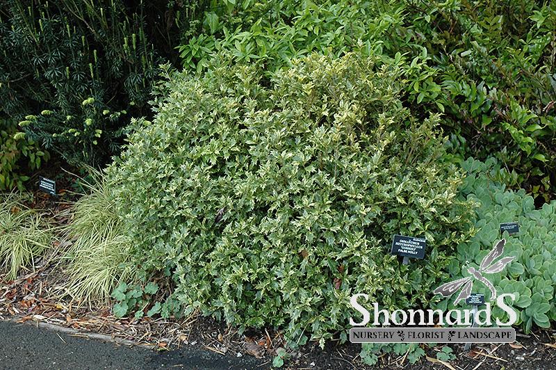 This cultivar is similar in looks to holly, but it's actually related to lilac and privet; beautiful golden-variegated leaves are quite ornamental; flowers may not be showy but are extremely fragrant, blooming in fall; more adaptable than holly