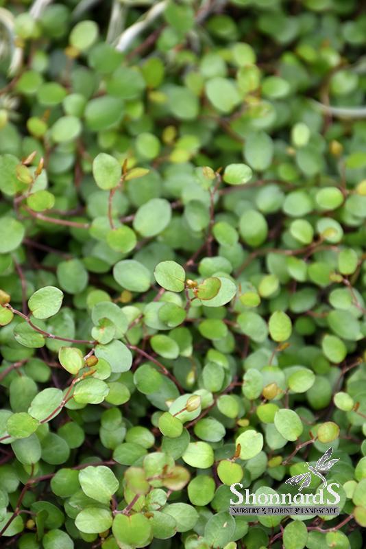 Creeping Wire Vine has attractive green evergreen foliage on a plant with a spreading habit of growth. The tiny glossy round leaves are highly ornamental and remain green throughout the winter.
