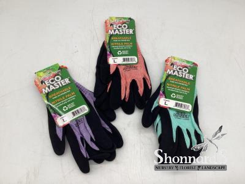 A garden glove that is eco-friendly and made with recycled materials allowing it to meet the Global Recycled Standard. This glove has a comfortable, flexible, and hand-hugging shell made from recycled PET polyester as well as having a micro-foam nitrile palm for excellent grip.