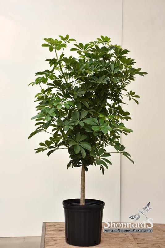 With its characteristic leaf shape resembling an umbrella, the Schefflera adds a touch of elegance and vibrancy to any indoor space. The leaves are a rich green, providing a refreshing contrast against various backdrops.