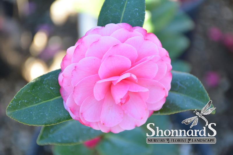 Lustrous evergreen foliage cover this upright shrub; masses of striking lavender-rose, formal double flowers that start blooming in early fall, through mid-winter; provide rich, acidic, moist, well-drained soil.