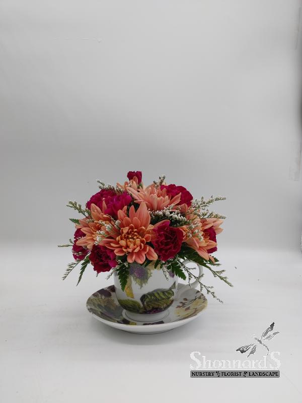Florist Tip: Teacups are available in assorted styles and are all ceramic.