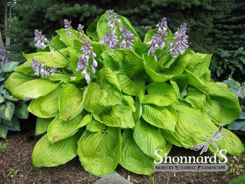 Hosta 'Sum & Substance' is a standout perennial known for its impressive size and lush foliage. This cultivar features large, heart-shaped leaves that can grow up to 18 inches wide, creating a bold presence in any garden setting. The leaves are a striking golden-yellow color, which becomes more vibrant as the season progresses, especially when exposed to partial shade.