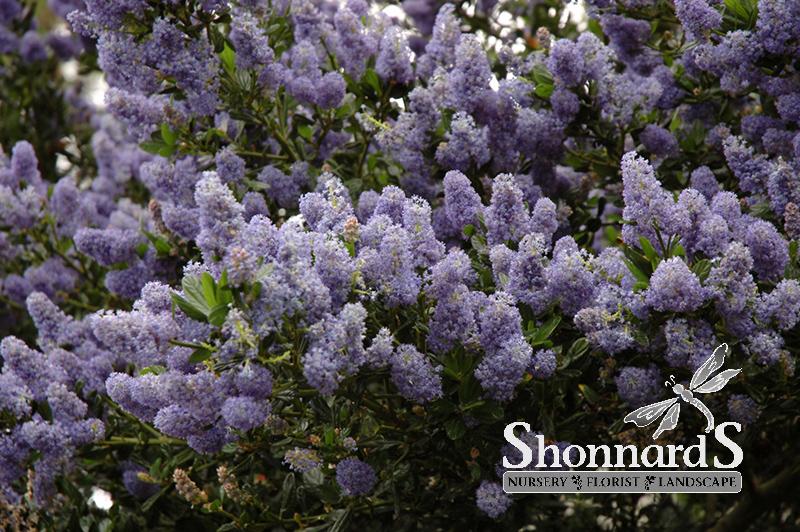 A dense growing shrub with dark green glossy foliage; beautiful powder blue flower clusters add color in the spring; perfect for screening and spring color along borders; needs weekly watering, or more often in extreme heat