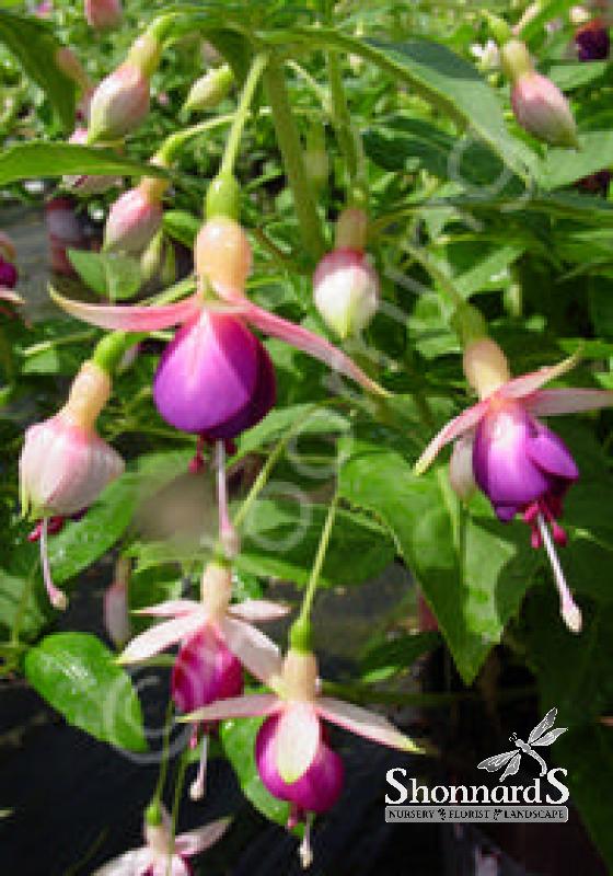 The Fuchsia 'Queen Esther' is a striking perennial known for its elegant, cascading flowers that add a touch of charm to any garden setting. This variety features exquisite pink and purple blossoms that dangle gracefully, attracting hummingbirds and other pollinators.