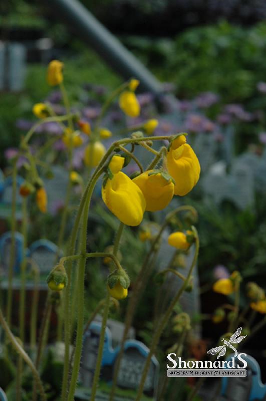 This stunning little alpine plant forms a low rosette of hairy dark green leaves; rising above the mound on wiry stems are pairs of yellow pouch-like flowers marked with tiny red spots in late spring through summer; protect from hot afternoon sun.