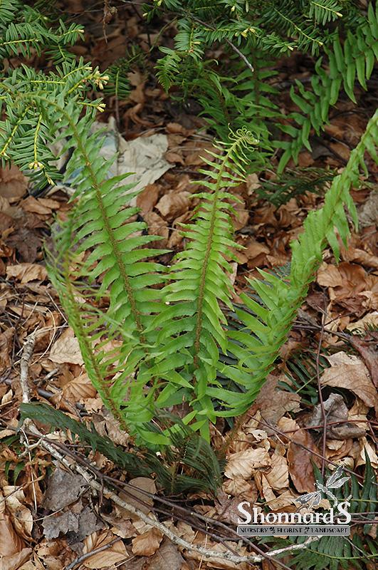 This shade loving variety produces two frond types, sterile fronds lie flat creating a glossy groundcover, and fertile fronds emerge upright in mid-summer; perfect for wet, shaded areas of the garden or shaded containers; needs constantly moist soil.