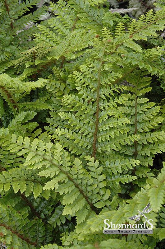 A stunning fern for the shade garden with bright green new fronds that turn darker when mature; after they unwind, the tips hang down, like a tassel, but eventually straighten out; cut fronds are great for flower arrangements