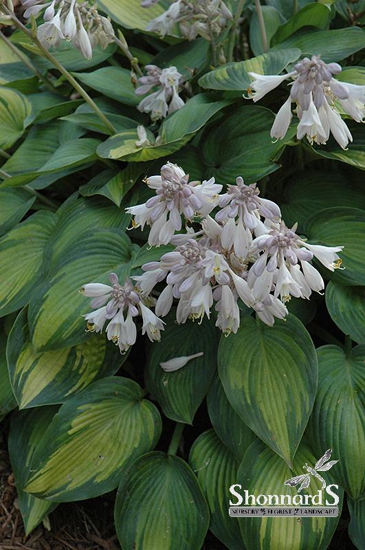 June Hosta features dainty spikes of lavender bell-shaped flowers rising above the foliage in mid summer. Its attractive textured heart-shaped leaves remain gold in color with distinctive aqua bluish-green edges and tinges of bluish-green throughout the season. The fruit is not ornamentally significant.