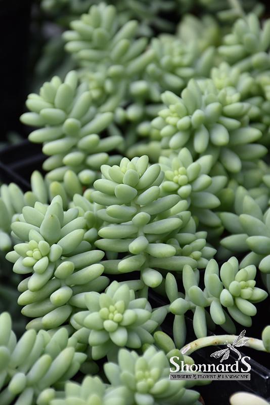 Burrito Stonecrop has masses of beautiful clusters of pink star-shaped flowers at the ends of the stems from late summer to late fall, which emerge from distinctive coral-pink flower buds. The flowers are excellent for cutting. Its large succulent oval leaves remain bluish-green in color throughout the year.
