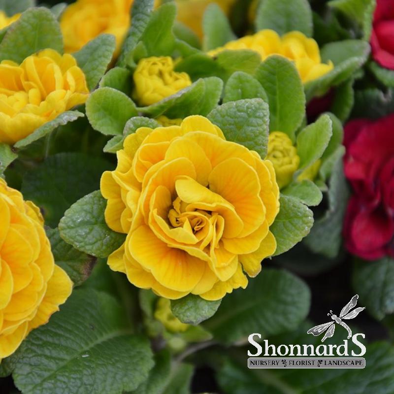 Clusters of double, bright yellow rosette flowers in spring. Works equally well in seasonal containers or in the garden.