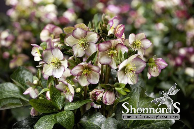Beautiful up-facing purple edged white flowers in winter. Hardy medium vigor plant with unsurpassed flower count even at a young age. February bloomer. Hardy to Zone 5.