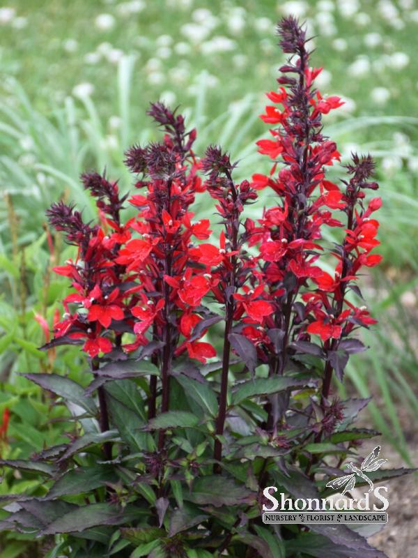 Lobelia 'Starship Scarlet' is a striking perennial known for its stunning, bright red flowers that bloom profusely throughout the summer months. This variety stands out with its compact growth habit, reaching heights of around 12 to 24 inches, making it an excellent choice for borders, containers, or as a focal point in your garden.