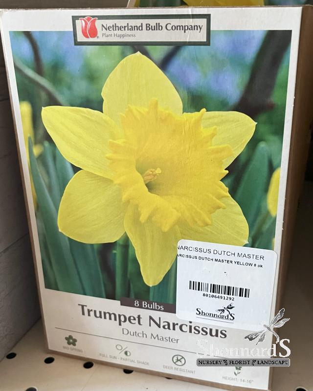Stunning blooms on what is considered the classic daffodil; rich golden-yellow flowers have a long straight trumpet shaped cup that has flares at the end and serrated edges; this cultivar creates a terrific show in mid spring.