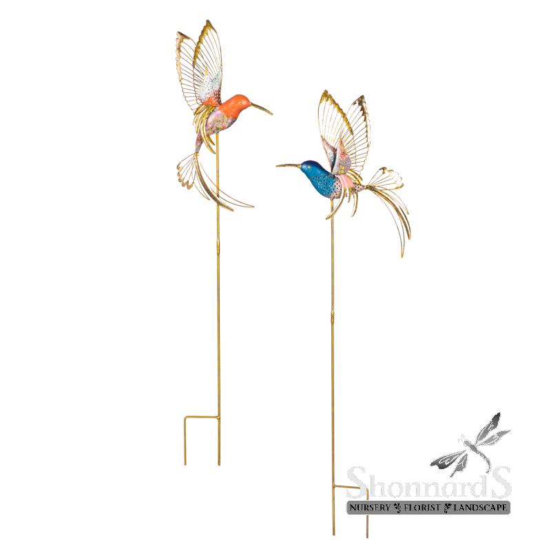 Fluttering Hummingbird Stake Blue Orange 37"
