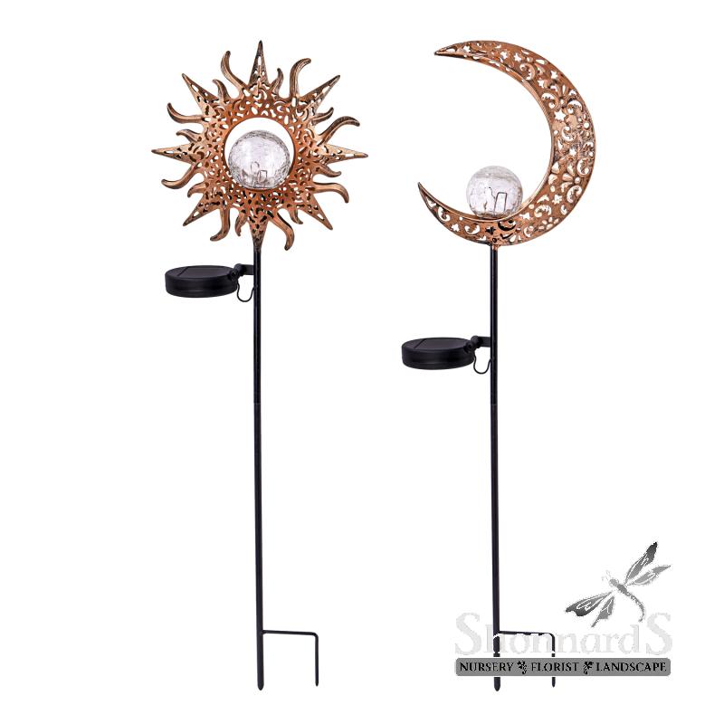 Moon and Stars Crackle Ball Solar Stake Gold 29"