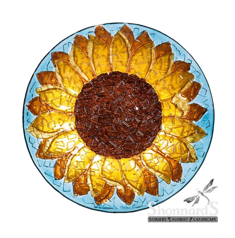 Glass Bird Bath Sunflower Crushed Glass 18"