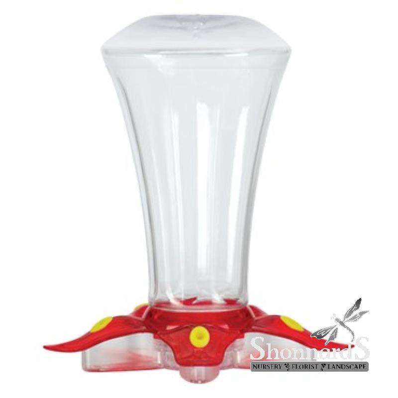 The Bliss hummingbird Feeder features a clear plastic bottle shape that sits flat for easy-filling, and a red base with five yellow feeding stations. The 13oz capacity will ensure you have plenty of nectar to keep your resident hummingbirds full, happy, and coming back for more.