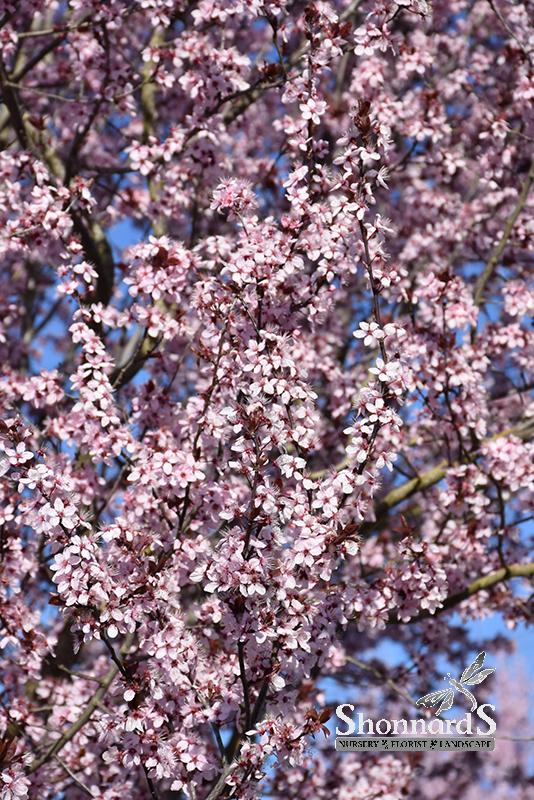 An upright-growing and colorful feature tree blanketed in a cloud of pink flowers in spring, rich deep purple foliage all season long; tends to grow more upright than other selections, best used as a solitary front yard accent or in street plantings.