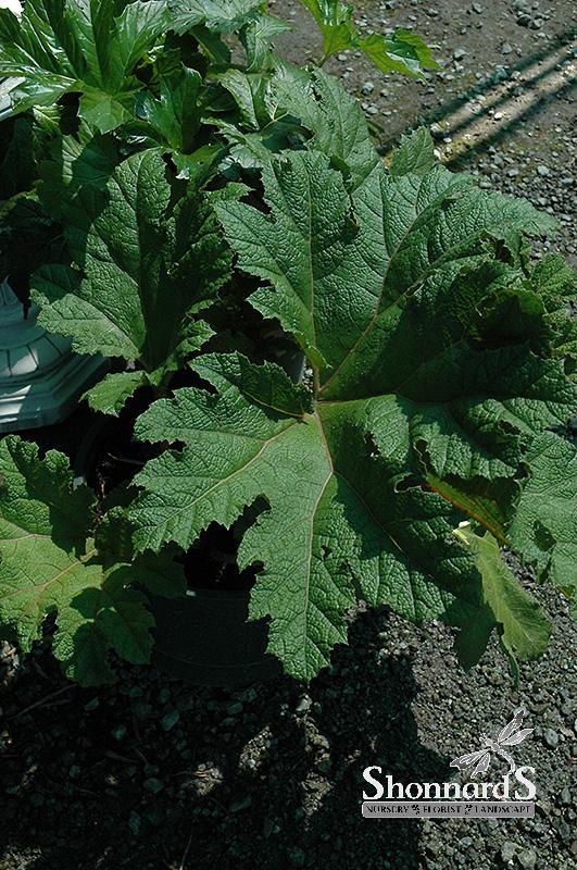 A gorgeous specimen plant for a large garden area; massive leaves on stalks rise up to 10 feet and unfurl up to 6 feet wide; it loves moist to wet enviroments so it is great alongside a pond; can be invasive in moist warmer climates;