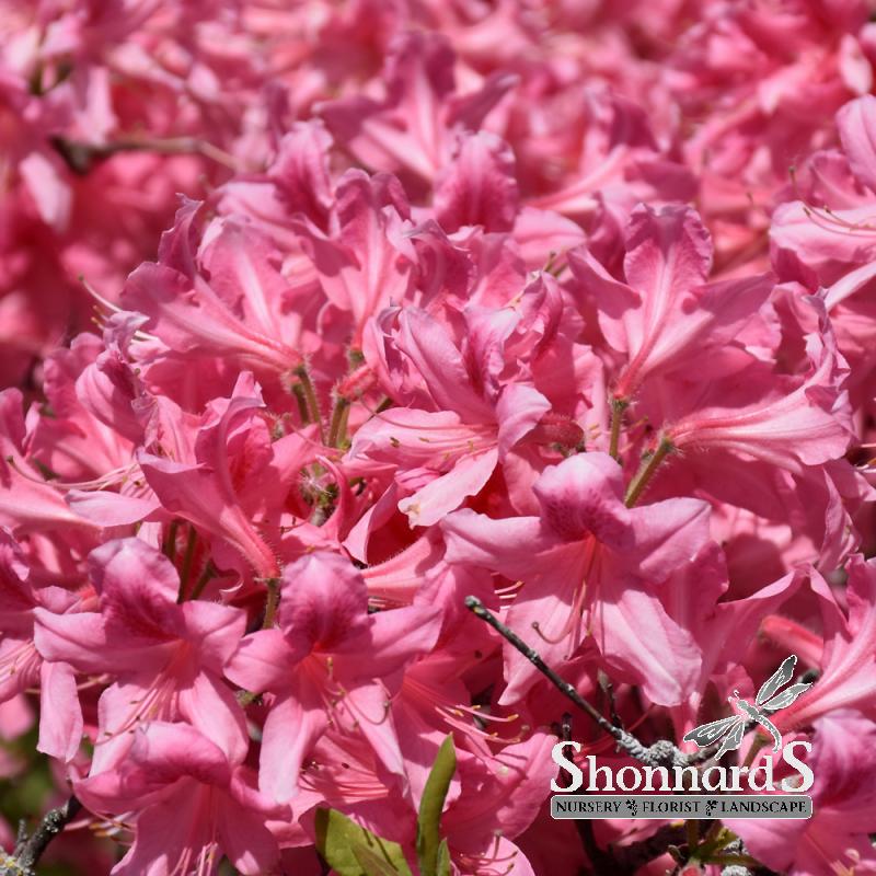 A deciduous azalea with vibrant, prolific rosy-pink blooms.
