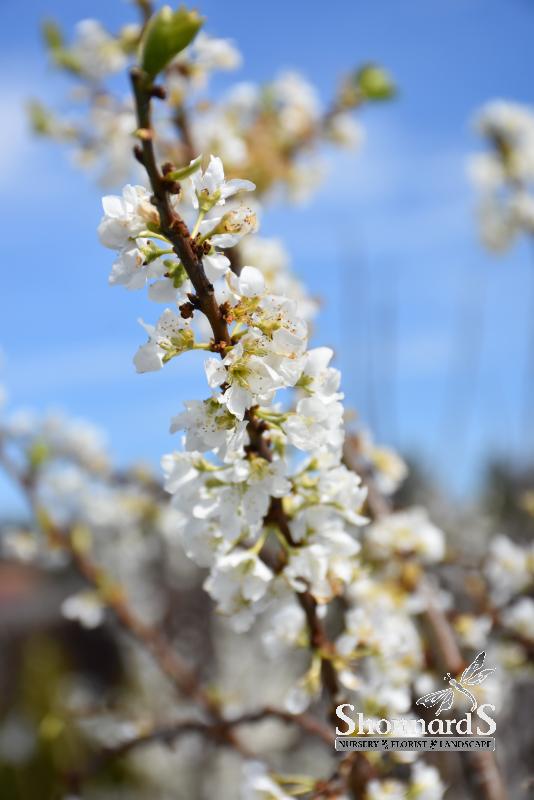 An inter-species, plum-apricot hybrid with showy fragrant white flowers in spring and sweet, light green fruit with maroon mottling in mid summer. The fruits have a sweet taste and a firm texture. Great for eating fresh and preserves; freestone; must have a Japanese plum variety or hybrid as pollinator.