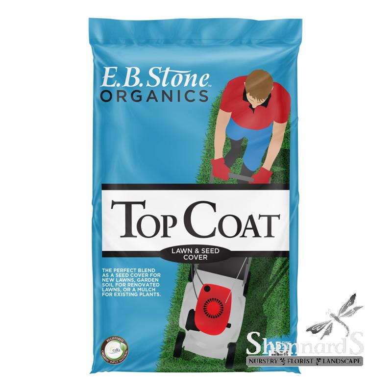 E.B. Stone Organics Top Coat Lawn & Seed Cover is a blend of aged forest products and chicken manure that can be used as a mulch in the garden or as a seed cover for newly planted or renovated lawns.